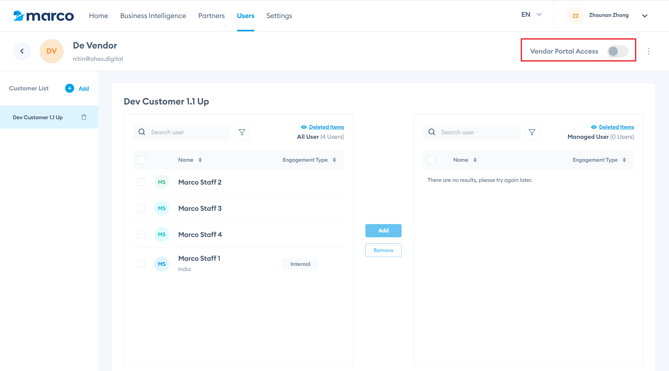 Removing Assigned Customer from a Vendor User